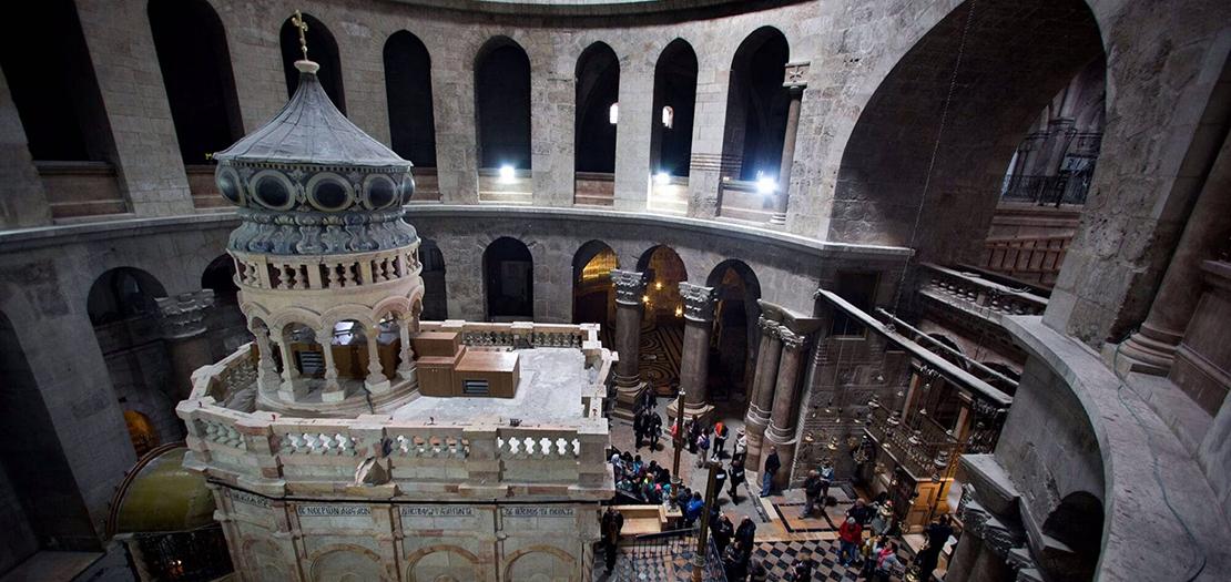 وتحدّد التقاليد المسيحية موقع صلب يسوع ودفنه في مكان الجلجلة، وهو موقع محفوظ اليوم داخل بناء شُيّد عام 1810 داخل الكنيسة. وقد بدأت أعمال التنقيب في عام 2022 تمهيدًا لتجديد أرضية هذا البناء، بعد موافقة الكنائس الثلاث المشرفة علة كنيسة القيامة عام 2019. ويُقدّم الفصل التاسع عشر من إنجيل يوحنا تفاصيل لا ترد في باقي الأناجيل: «وكان في الموضع الذي صُلب فيه بستان، وفي البستان قبر جديد لم يُوضَع فيه أحد بعد» (يوحنا 41:19).