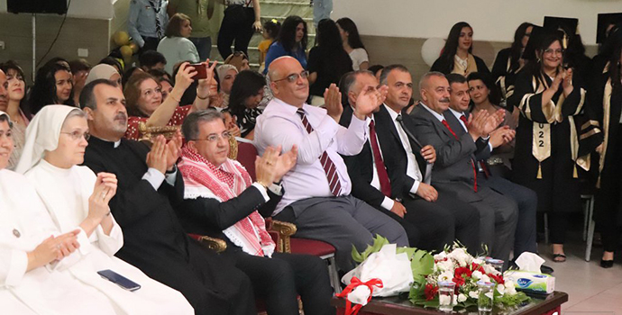 المديرون الأحباء، وكما تعوّدتُ أن أناديكم الشّركاءَ الأعزّاء، أوصيكم ألّا تقفوا عند الحواجز، ولا تسمحوا للظّروف والإمكانات أن تحرق أحلامكم. فأنتم كنتم وستبقون أصحاب رسالة. لم تكونوا يومًا موظفين ينتظرون الراتب وحسب، وإنما دائمًا كنتم أصحاب البيت والحرّاس الأمناء على مقتنياته وأبنائه. فاستمروا بالشراكة مع الجنود البواسل مُعلّمينا وإداريّنا لتُتابِعوا مسيرة النهضة والتقدُّم؛ لتكونَ مدارس البطريركية اللاتينية الأكثر تميّزًا في رسالتها وأجوائها وكوادرها وأبنائها.
