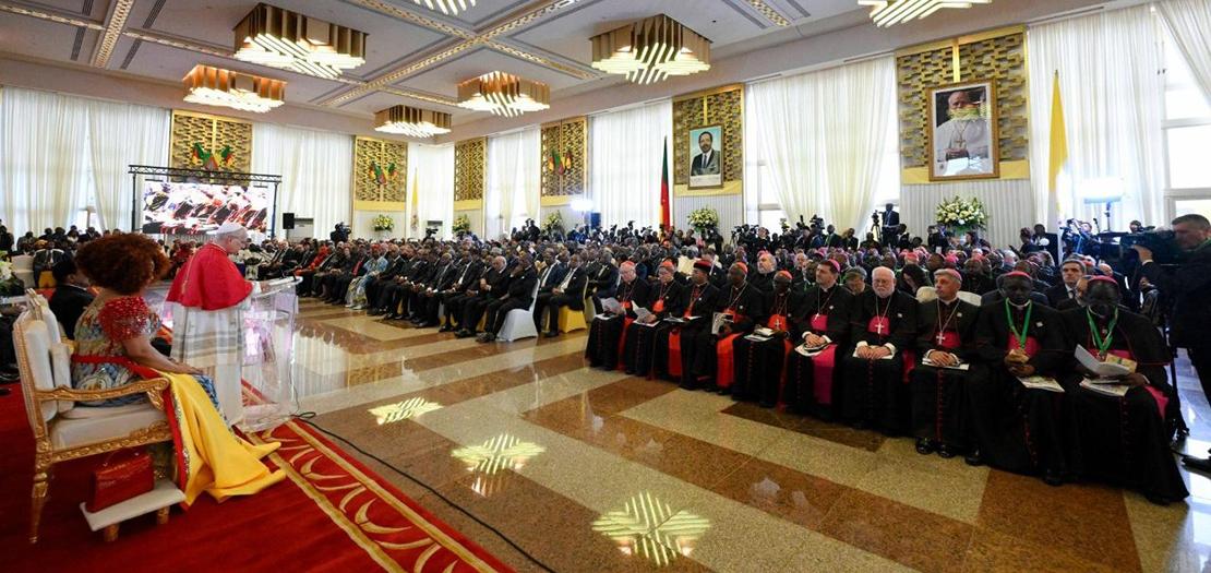 أتيتُ إليكم راعيًا وخادمًا للحوار والأخوّة والسّلام. إنّ زيارتي تعبّر عن محبّة خليفة بطرس لجميع الكاميرونيّين، وكذلك عن رغبتي في تشجيع كلّ واحد منكم على مواصلة العمل، بحماسٍ ومثابرة، من أجل بناء الخير العام. إنَّنا نعيش في زمنٍ يكثر فيه روح الاستسلام، والميل إلى الشّعور بالعجز الذي يشلّ التّجديد الذي يشعر به الشّعوب في أعماقهم. الجوع والعطش إلى العدالة شديد! وما أشدّ التّوق إلى المشاركة، وإلى الرّؤى، وإلى الخيارات الشّجاعة، وإلى السّلام! إن رغبتي الكبيرة هي أن أصل إلى قلب الجميع، ولا سيّما الشّباب، المدعوّين إلى الإسهام، حتّى على الصّعيد السّياسيّ، في صُنعِ عالمٍ فيه مزيد من العدل. كما أودّ أن أعبِّر عن إرادتي في تعزيز روابط التعاون بين الكرسي الرّسولي وجمهوريّة الكاميرون، القائمة على الاحترام المتبادل، وعلى كرامة كلّ إنسان، وعلى الحرّيّة الدّينيّة.