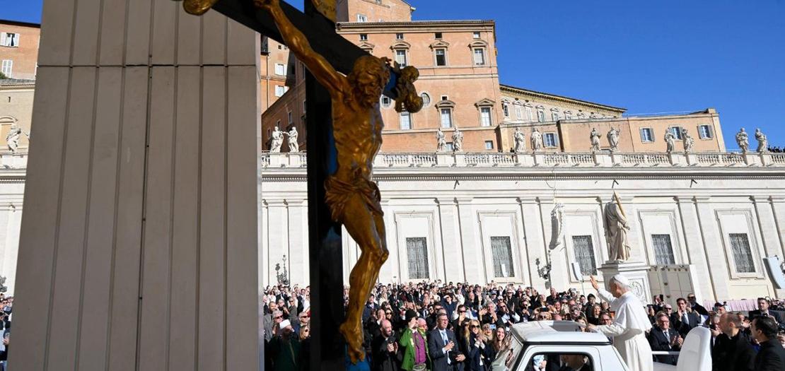 خلال مقابلته العامة مع المؤمنين في ساحة القديس بطرس، اليوم الأربعاء 5 تشرين الثاني 2025، قال البابا لاون الرابع عشر إنّ "الفصح لا يُلغي الصليب، بل ينتصر عليه في المبارزة العجيبة التي غيّرت تاريخ الإنسان"، لافتًا إلى أنّ "زمننا أيضًا، الذي يتّسم بصلبان كثيرة، يتطلّع إلى فجر الرجاء الفصحي".