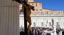 شاءت العناية الإلهيِّة أن يتمَّ هذا الحدث في ذات يوم عيد الصّليب المجيد، الّذي ولدَ بالشّرق عام ٣٣٥، غداةَ تكريس بازيليك كنيسة القيامة التي شُيّدت فوق الجلّجثة وقبر ربِّنا، من قبل الإمبرطور قسطنطين الكبير، والذي تكرِّمونه كقديس. سيُحتفل بعد شهر بالذكرى السّنويِّة الـ ١٧٠٠ للرؤيِّة التي شاهد فيها، أثناء ليلة رمزيِّة لرتيابه، علامة (chrismon) متوهّجة وهنا سمع صوتا يقول له: "بهذه العلامة ستنتصر!". لاحقا، تاب الإمبرطور قسطنطين، ووقّع مرسوم ميلانو، وأطلق اسمه على القسطنطينيِّة. أعتقد أنّ هذا الإرشاد يمكن قراءته وتفسيره على ضوء عيد الصليب المجيد، وخاصة على ضوء علامة (chrismon) ، الـx (خاي) والـ p (رو)، من الحرفين الأولين من كلمة المسيح (Christos) . قراءة كهذه تقود لإعادة اكتشاف حقيقيّ لهوّية المعمّد والكنيسة، وتشكّل، في الوقت ذاته، دعوة للشهادة في ومن خلال الشركة. ألم تتأسس الشهادة والشركة المسيحيّتان على السرّ الفصحيّ، أي على صلب وموت وقيامة المسيح؟ ألم يجدا فيه تحقيقهما التام؟ هناك وثاق لا ينفصل بين الصليب والقيامة، والذي لا يمكن للمسيحيّ أن ينساه. بدون هذا الوثاق، تعظيم الصليب يعني تبرير الألم والموت، حيث لا يرى فيهما سوى نهاية مهلكة. بالنسبة للمسيحيّ، تعظيم الصليب يعني الإتحاد بشموليّة محبّة الله غير المشروطة للبشر. إنه القيام بفعل إيمان! تعظيم الصليب، من منظور القيامة، يعني اشتهاء العيش والشهادة لشموليّة هذه المحبة. إنّه القيام بفعل محبّة! تمجيد الصليب يقود للالتزام بمبادرات الشركة الأخويّة والكنسيّة، نبع للشهادة المسيحيّة الحقّة. إنه القيام بفعل الرجاء!