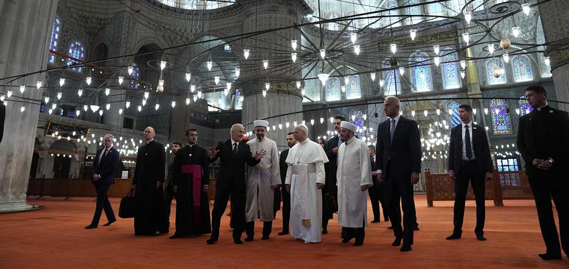 استهلّ البابا لاون الرابع عشر، صباح السبت 29 تشرين الثاني 2025، اليوم الثالث من زيارته الرسولية الأولى إلى الخارج بزيارة جامع السلطان أحمد في إسطنبول، المعروف عالميًا باسم "الجامع الأزرق". ووفقًا لدار الصحافة التابعة للكرسي الرسولي، فإنّ "البابا عاش لحظات الزيارة بصمت، في روح من التأمل والإصغاء العميق، وباحترام كبير للمكان ولإيمان المصلين فيه".