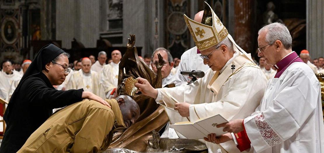 منح البابا لاون الرابع عشر خلال قداس سبت النور المعمودية لعشرة موعوظين: خمسة من أبرشية روما، وواحد من كوريا، واثنان من بريطانيا، واثنان من البرتغال. وقد شاركوا في تقدمة القرابين خلال القداس الإلهي، وتناولوا القربان الأقدس للمرة الأولى.