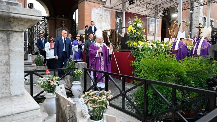 ترأس البابا لاون الرابع عشر قداس تذكار جميع الموتى المؤمنين داخل مقبرة فيرانو في روما، حيث أكّد كيف يتردّد إعلان الحياة الأبدية التي وهبها المسيح بين شواهد القبور: "فهو سيُبيد الموت إلى الأبد، بل لقد غلبه بالفعل، إذ فتح لنا طريق الحياة الأبدية بعبوره وادي الموت خلال سرّه الفصحي. وهكذا، باتحادنا به، نستطيع نحن أيضًا أن ندخل وادي الموت ونعبره".