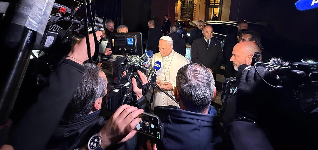 في كاستل غاندولفو، أجاب البابا لاون على أسئلة الصحافيين، ووصف رحلته الرسولية المقبلة إلى تركيا ولبنان بأنها رحلة تميزها الرجاء والسلام. وفيما يتعلق بأوكرانيا والشرق الأوسط، شدّد على ضرورة السعي دائمًا للحوار لإنهاء الحرب. وبخصوص الجهود المبذولة لوقف العنف ضد النساء في اليوم المخصص لهذه القضية، أشار إلى أنّ تغيير العقليات يجب أن يبدأ بتنشئة الشباب.