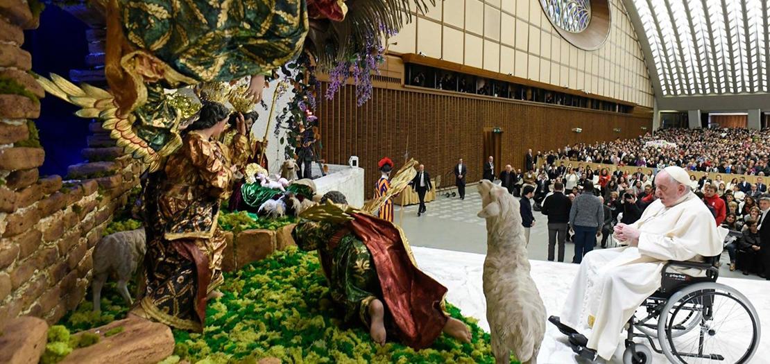 وواصل البابا فرنسيس متأملا في سر ميلاد يسوع بمرافقة القديس فرنسيس دي سال حسب ما قال قداسته. وتابع أن القديس دي سال كتب في إحدى رسائله إنه يفضِّل أن يرى الطفل الصغير في المذود مائة مرة أكثر من الملوك وعروشهم. وقال البابا فرنسيس إن يسوع ملك الكون لم يجلس أبدا على عرش، فقد وُلد في مذود ومات على صليب ودُفن. وأشار قداسته هنا إلى تشديد القديس لوقا الإنجيلي في سرده ميلاد يسوع على المذود، ما يعني أهميته لا فقط كتفصيل لوجستي بل كعنصر رمزي لفهم أي مسيح هذا الذي وُلد في بيت لحم، أي باختصار مَن هو يسوع. وتابع الأب الأقدس مذكرا بكلمات بولس الرسول في رسالته إلى أهل فيلبي أن يسوع هو ابن الله الذي يخلصنا بأن ظهر في هيئة إنسان ووضع نفسه. وقال البابا إننا نرى هذا السر بشكل محدد في المذود، في ذلك الطفل المضجع في مذود، هذه هي العلامة التي يقدمها لنا الله في الميلاد، هكذا كانت بالنسبة لرعاة بيت لحم وهكذا هي اليوم وهكذا ستكون دائما.