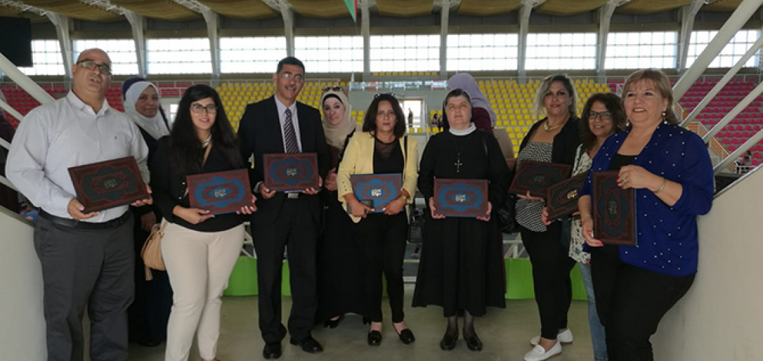 في احتفال بهيج ضمّ العديد من الفقرات المتنوعة، تم تكريم جميع المعلمين الذين شاركوا في تأليف وتطوير المناهج المدرسية الجديدة، ومن ضمنهم معلمي ومعلمات التعليم المسيحي الذين شاركوا في تطوير مناهج التعليم المسيحي المسكونية، وذلك بمنحهم جميعاً شهادة تقدير من قبل وزارة التربية والتعليم، شكراً وتقديراً لهم على جهودهم الجبارة خلال هاذين العامين لإنجاز هذا المشروع الطموح.