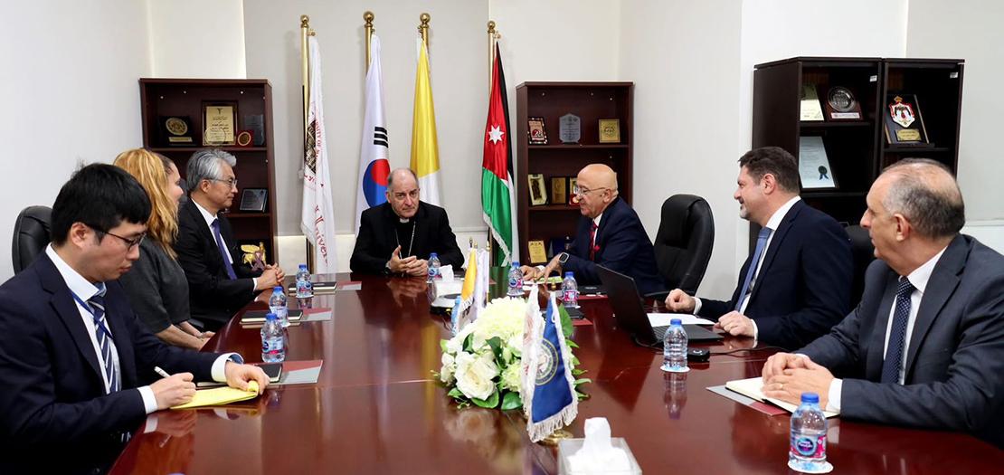 استضافت الجامعة الأميركية في مادبا، اليوم الأربعاء الموافق 4 شباط 2026، سعادة سفير الكرسي الرسولي (الفاتيكان) لدى المملكة، رئيس الأساقفة جوفاني بيترو دال توزو، وسعادة سفير جمهورية كوريا الجنوبية لدى المملكة، السيد كيم بيل وو، حيث كان في استقبالهما رئيس مجلس أمناء الجامعة المهندس عزام شويحات، والقائم بأعمال الرئيس الأستاذ الدكتور عدي عريضه.