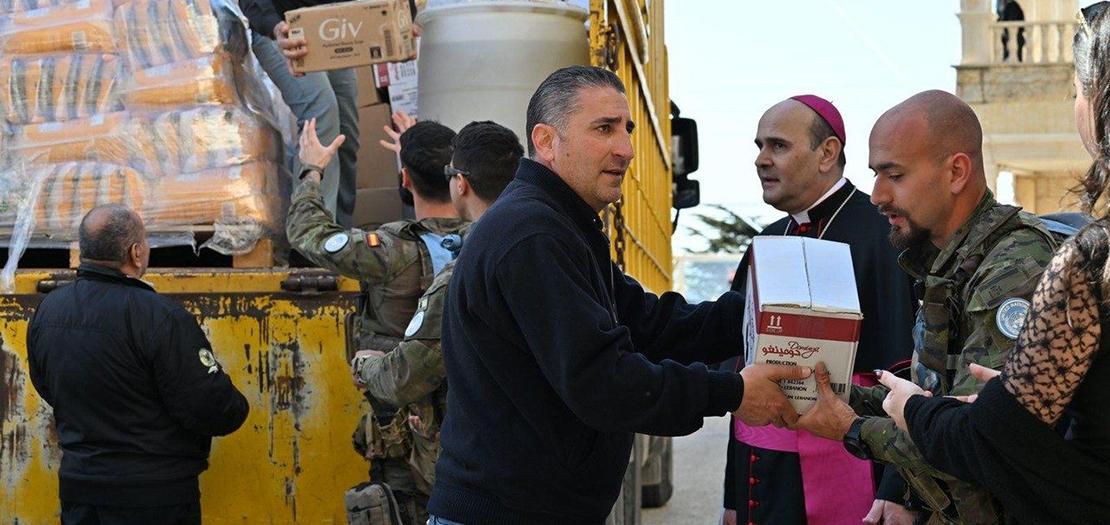 انتشرت على وسائل التواصل الاجتماعي في لبنان صور ومقاطع فيديو لممثل الكرسي الرسولي، بزيه الكهنوتي الكامل، وهو يشارك بنفسه في تفريغ الصناديق والأكياس. ويقول: "شمّرنا عن سواعدنا لتفريغ كل المواد حتى نتمكن من المغادرة. لقد زرنا ست قرى في المنطقة نفسها، والتقينا بالعديد من الجماعات المحلية". وأضاف أن اللقاءات شملت جماعات مارونية وأرثوذكسية وملكية ولاتينية، إضافة إلى جماعات أرثوذكسية أو مسيحية يعيش معها دروز وسنّة.
