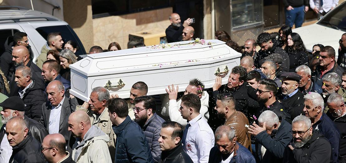 بعد مشاركتها في مراسم الجنازة بتأثر، لم تقوَ المعلمة دوريس فرح (55 عامًا) على حبس دموعها وهي تصف حالة القلق والحزن التي تعيشها منذ بدء الحرب. وتقول لفرانس برس "نحن متمسكون بأرضنا.. نريد من الجيش أن يحمينا، هو وإيماننا ضمانتنا".