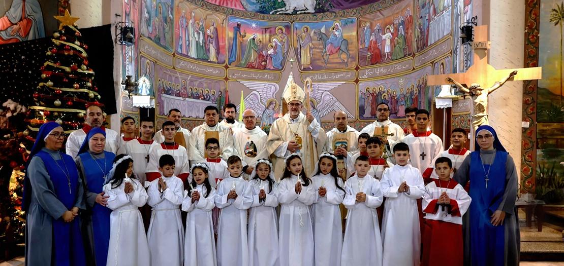 كما شدد على أن البطريركية ملتزمة بالوقوف إلى جانب أهالي غزة، مؤكّدًا أنهم لن يكونوا وحدهم مهما صعُبت الظروف أو غابت الأضواء الإعلامية. وأوضح أن ما يبدو اليوم مستحيلًا يمكن تحقيقه، كما صمد سكان القطاع رغم سنوات الحرب، مضيفًا أن الميلاد هو ولادة الخلاص في وقت الدمار، وأن المعمودية والمناولة الأولى هي بداية ولادة جديدة، ومسار لإعادة بناء حياة مملوءة بالنور والرجاء.