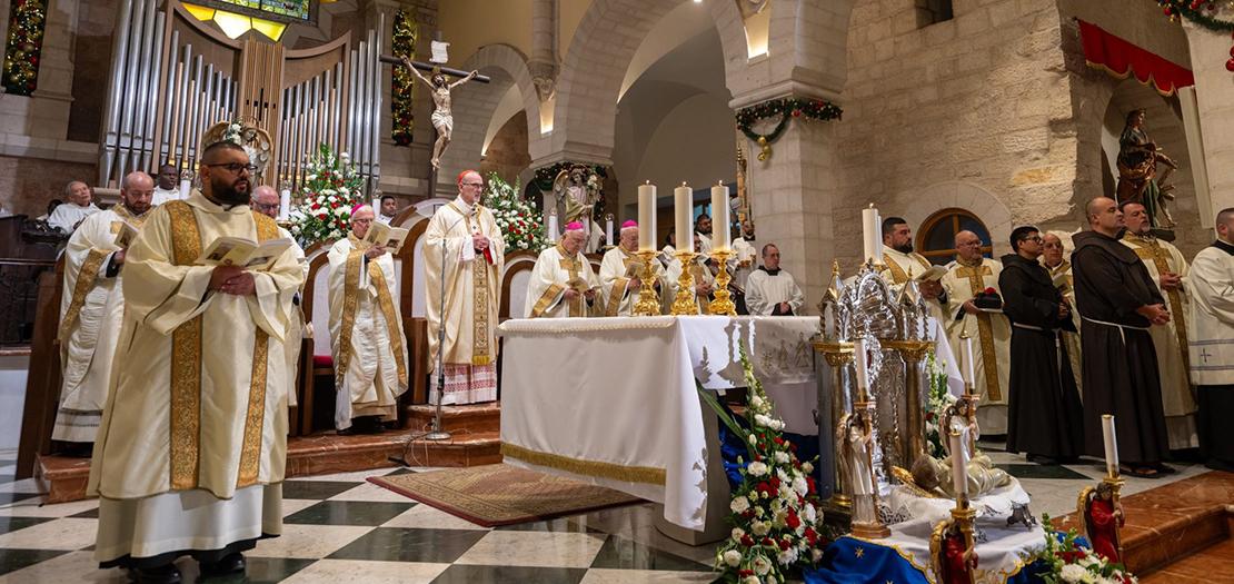 ترأس الكاردينال بييرباتيستا بيتسابالا، بطريرك القدس للاتين، قداس منتصف الليل لعيد الميلاد المجيد، وذلك في كنيسة القديسة كاترينا المحاذية لكنيسة المهد في مدينة بيت لحم، بمشاركة لفيف من الأساقفة والكهنة والرهبان والراهبات، وحشد من المؤمنين والحجاج.