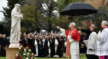 لقد صليت، صليتُ. صليت للعذراء، وصليت من أجل السلام. لم أشاء الترويج لذلك. لكني صليت. وعلينا أن نكرّر دومًا هذه الصلاة على نية السلام. فقد طلبَتْ هي ذلك خلال الحرب العالمية الأولى. وهذا ما طلبتُه هذه المرة من العذراء. وصليتُ. لم أشأ الترويج لذلك.