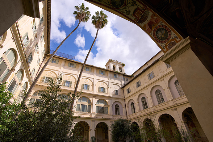 فخلف باب خشبي كبير، تكشف الجدران المزيّنة باللوحات الجدارية، والمغلقة أمام عامة الناس، تفاصيل من تاريخ هذا المكان الحافل بالأحداث، بما في ذلك انعقاد مجامع انتخاب البابا ومحاكمة العالم غاليليو غاليلي من قبل محاكم التفتيش.