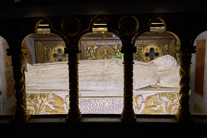 وتُظهر صورة أخرى القديسة كاترينا السيانية، التي عاشت فترة في هذا المكان، فيما يوجد قبرها في البازيليك المجاورة. ويشير الأخ أوكوني إلى أن جسدها موجود هنا، بينما نُقل جمجمتها إلى رهبان الدومينيكان في مدينة سيينا.
