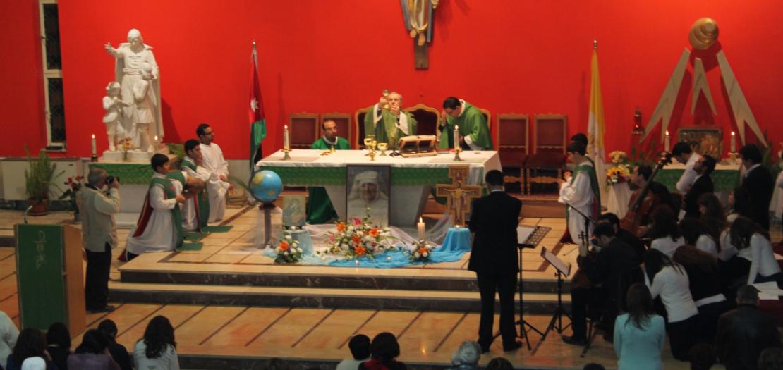 ترأس الأب عصام الزعمط، كاهن رعية اللاتين في جبل الحسين، يعاونه الأب مودي هنديلة، كاهن رعية الروم الكاثوليك في جبل الحسين، القداس الإلهي الذي أقيم في كنيسة القديس يوحنا دي لا سال (الفرير)، لمناسبة الاحتفال بعيد الطوباوية ماري دي لا باسيون، مؤسسة رهبنة الفرنسيسكانيات مرسلات مريم.