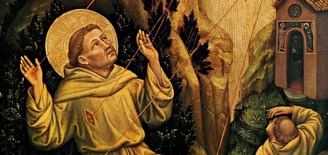 في أيلول من عام 1224، اعتزل القديس فرنسيس الأسيزي جبل فيرنا (La Verna) في توسكانا، حيث كان يطلب من الله أن يثبّت قلبه في المحبة الكاملة. هناك، وبعد صومٍ دام أربعين يوماً استعداداً لعيد ميخائيل رئيس الملائكة، غمره نورٌ سماوي عجيب، وفي رؤيا مهيبة ظهر له المسيح مصلوباً على هيئة السرافيم. ومن تلك الرؤيا نال فرنسيس نعمةً فريدة في تاريخ الكنيسة: سمات المسيح المصلوب، أي الجروح المقدسة في يديه ورجليه وجنبه، التي بقيت واضحة في جسده حتى وفاته بعد سنتين. هذه العلامة لم تكن مجرد ظاهرة جسدية، بل شهادة روحية على عمق اتحاده بالمسيح، حتى صار هو نفسه أيقونة حيّة للصليب.