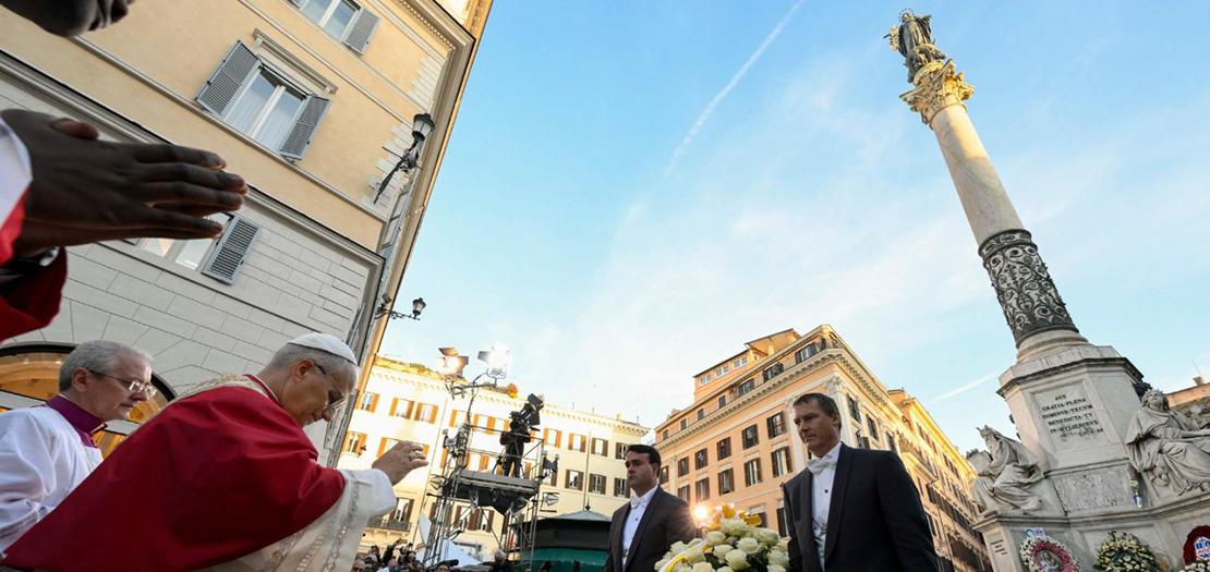 بمناسبة عيد الحبل بلا دنس بالطوباوية مريم العذراء، أُقيم عند الساعة الرابعة من بعد ظهر الاثنين، في أجواء يغمُرها الفرح الروحي والإيمان حفلُ تكريمٍ مهيب للعذراء مريم، سيّدة الحبل بها بلا دنس، في ساحة إسبانيا بقلب العاصمة روما، بحضور قداسة البابا لاوُن الرابع عشر وذلك جرياً على التقليد السنوي العريق الذي يجمع المؤمنين حول أمّهم السماوية في هذا اليوم المبارك.
