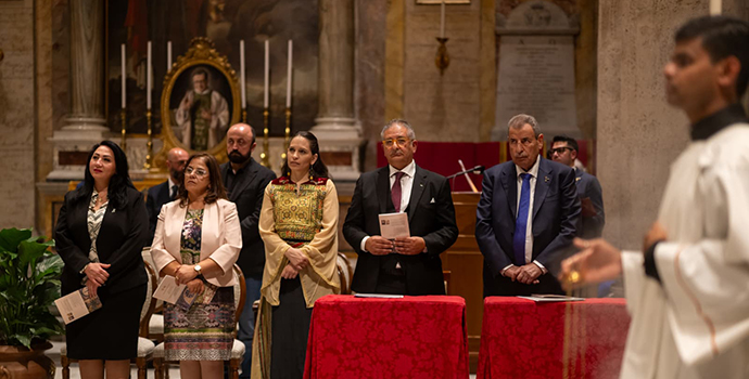 وحضر القدّاس عضو اللجنة التنفيذية لمنظمة التحرير الفلسطينية ورئيس اللجنة الرئاسية العليا لمتابعة شؤون الكنائس في فلسطين الدكتور رمزي خوري، وسفير دولة فلسطين لدى حاضرة الفاتيكان عيسى قسيسية، إلى جانب عدد من السفراء المعتمدين لدى الكرسي الرسولي، ومسؤولين في الفاتيكان، وشخصيات مدعوّة أخرى.