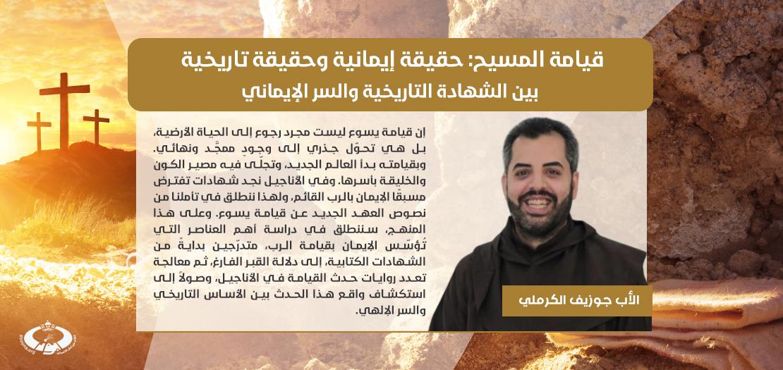 وعلى هذا المنهج، سننطلق في دراسة أهم العناصر التي تُؤسّس الإيمان بقيامة الرب، متدرّجين بدايةً من الشهادات الكتابية، إلى دلالة القبر الفارغ، ثم معالجة تعدد روايات حدث القيامة في الأناجيل، وصولاً إلى استكشاف واقع هذا الحدث بين الأساس التاريخي والسر الإلهي.