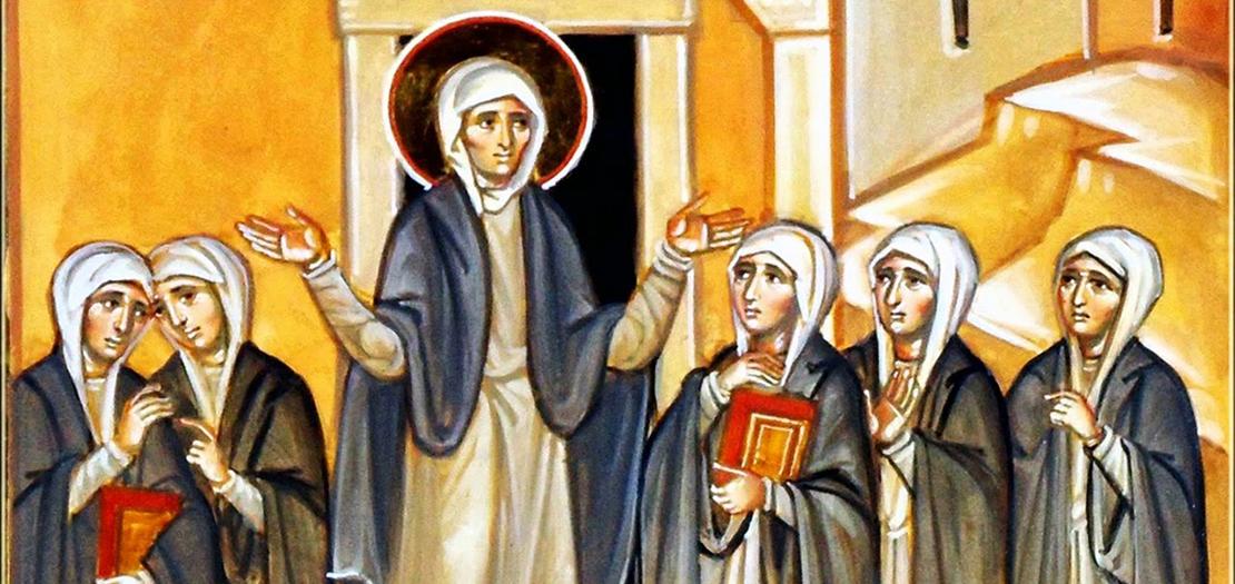 ارتدت ثوب الرهبنة الفرنسكانية الثالثة منذ شبابها. فقدت أبويها عندما كان لا يزال عمرها خمسة عشر سنة. رحلت إلى الأراضي المقدسة وهناك فقدت بصرها، بشكل معجزة، لوقت يسير، ورأت خلاله رؤيا فيها نور سماوي وسلم يصل الأرض بالسماء وفي أعلاه جمع من الفتيات كن ينتظرنها. هكذا فهمت بأن الله يدعوها خدمتهن.
