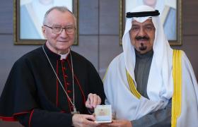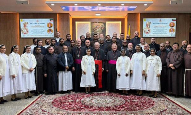 أبونا: يقوم الكاردينال بيترو بارولين، أمين سرّ دولة حاضرة الفاتيكان، بزيارة راعوية ودبلوماسية إلى دولة الكويت في 14 و16 كانون الثاني، تتخلّلها مراسم رفع كنيسة سيدة الجزيرة العربية في الأحمدي إلى رتبة بازيليك صغرى. وفي اليوم الثاني من الزيارة، يوم الخميس، القى نيافته كلمة إلى إكليروس ومؤمني النيابة الرسولية لشمال الجزيرة العربية، واحتفل بالقداس الإلهي. لقاء مع الإكليروس والتقى الكاردينال بارولين بالكهنة والره ...المزيد