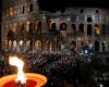 تسير الجموع خلف الصليب وتضيء الشموع عتمة ساحة الكوليسيوم الذي شهد سفك دماء شهداء المسيحية وحيث طحنت أنياب الأسود أجسادهم الغضة إبان الإضطهادات العشرة للمسيحيين في عهد الإمبراطورية الرومانية على مدى ما يقارب ثلاثة قرون، ليتحول اليوم الى ساحة مضيئة ترسم فسيفساء بشرية مزينة بالمؤمنين وعلى رأسهم راعيهم، رأس الكنيسة، الذي يسرع الخطى ليعبر الى فصح القيامة المجيدة.