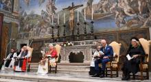 وفي الختام، دعا البابا فرنسيس الجميع إلى العمل كي يكون ما عيش اليوم في هذا اللقاء الخطوة الأولى في مسار وأن يطلق مسيرة أخوّة. كما دعا قداسته إلى التأمل في العناق، وأن يحتفظوا من هذا اللقاء بالرغبة في معانقة رجال ونساء العالم كله لكي نبني معًا ثقافة لقاء.