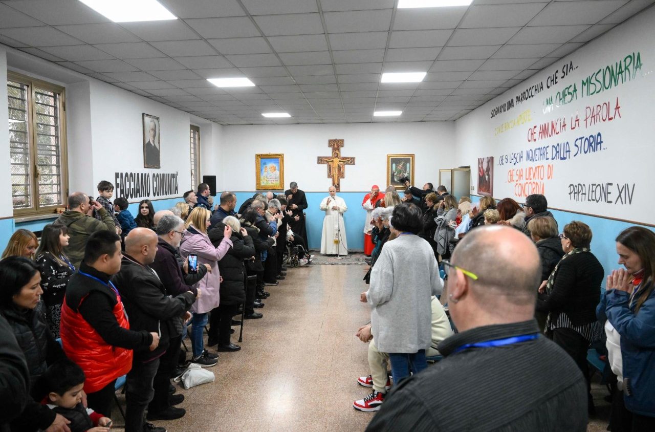 استهل البابا زيارته بلقاء أطفال الرعية في باحة الكنيسة، حيث أعرب عن أسفه لتجدد اندلاع الحرب في الشرق الأوسط، مؤكدًا أن الله يريد السلام لجميع الشعوب. وقال: «علينا أن نصلي بحرارة من أجل السلام، وأن نعيش في وحدة، وأن نرفض إغراء إيذاء الآخرين. فالعنف ليس الخيار الصحيح أبدًا». وتوقف عند واقع الحي، مشجعًا الأطفال على احترام بعضهم بعضًا، وعلى قول «لا» دائمًا للمخدرات، في إشارة إلى أن تعاطي المخدرات والإدمان يمثلان مشكلة في المنطقة.