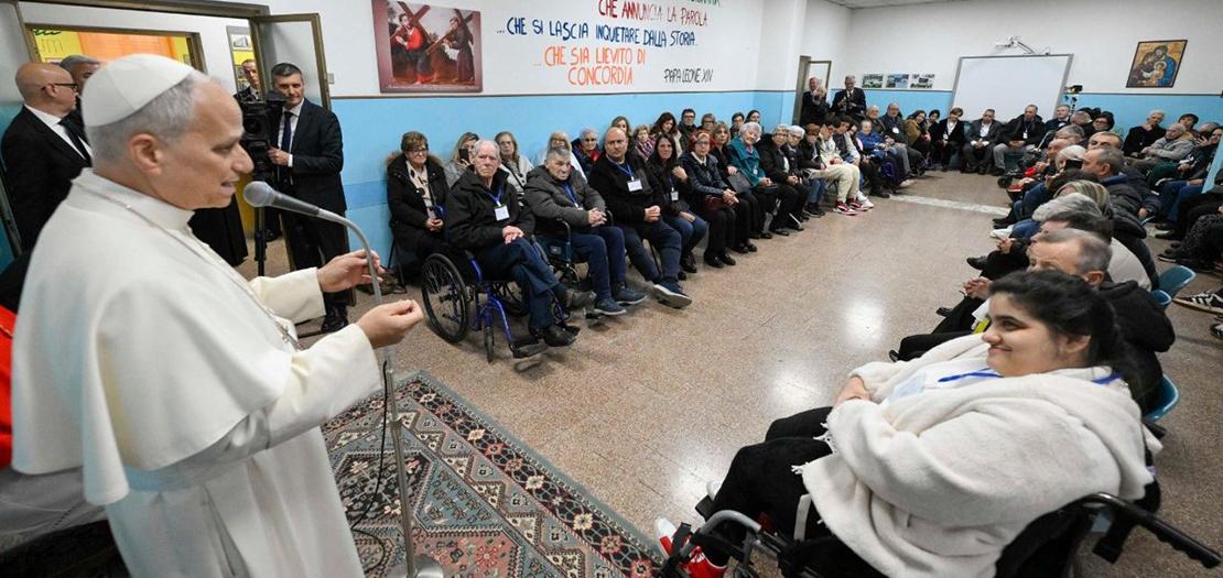 بعد ذلك، التقى البابا بعدد من المسنين والمرضى في الرعية، داعيًا إياهم إلى بناء جماعة متماسكة من أجل خير الجميع. وقال: «حين نعيش في شركة، نشهد لقوة تفوق كل واحد منا. إنها القوة التي تنبع من محبة الله، والتي تجعلنا حقًا عائلة واحدة». كما حثّ الجميع على التعاون للنهوض بالمجتمع المحلي، والعمل مع السلطات المدنية للقضاء على مظاهر الجريمة.
