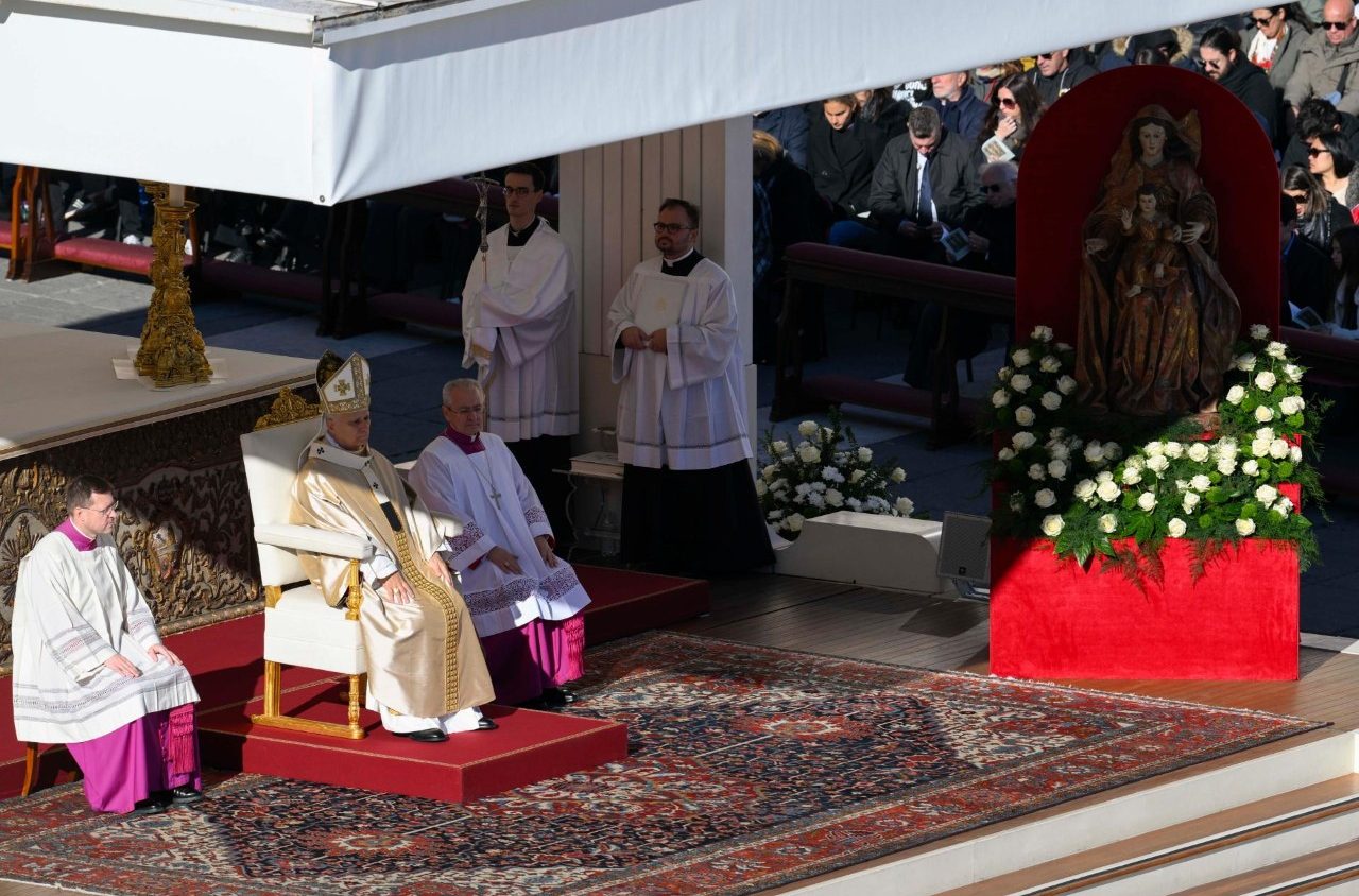 وخلال ترؤسه القداس الإلهي في ساحة القديس بطرس، توقّف الأب الأقدس في عظته عند المزمور، مشيرًا إلى أنّ الليتورجيا "تدعونا… إلى السير معًا في التسبيح والفرح نحو لقاء الرب يسوع المسيح، ملك الكون". وأكّد أنّ مُلك المسيح يتجلّى لا في القوّة بل في بذل بالذات": "قوّته هي المحبّة، وعرشه هو الصليب"، ومن هناك "يُشرق ملكوته على العالم".