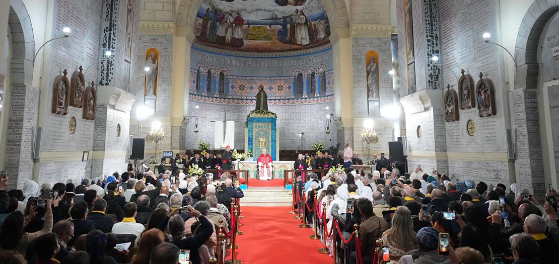 وَخَيرُ عَلامَةٍ علَى ذَلِك، كَما ذَكَّرَنا صَاحِبُ النِّيافَة، هي هذِه البازِيلِيكا نَفسُها، رَمزُ كَنِيسَةٍ مُكَوَّنَةٍ مِن حِجارَةٍ حَيَّة، فيها تُبنَى، تَحتَ مَظَلَّةِ مَريَمَ العَذراءَ سَيِّدَةِ أفرِيقيا، وَحدَةٌ وشَرِكَةٌ بَينَ المَسِيحِيِّينَ والمُسلِمِين. هنا حُبُّ السَّيِّدَةِ مَريَمَ العَذراء (لَلا مريم - الوالِدِيّ يُوَحِّدُ الجَمِيعَ علَى البُنُوَّة، كلٌّ غَنِيٌّ بِتَنَوُّعِه، ويَجمَعُ بَينَهُم التَطَلُّعُ إلى الكَرامَةِ والمَحَبَّةِ والعَدلِ والسَّلام. إنَّهُم أَبناءٌ يَتوقونَ إلى السَّير، والعَيش، والصَّلاة، والعَمَل، والحُلمِ معًا، لأنَّ الإِيمانَ لا يَعزِلُ بَل يَدمِج، وَيُوَحِّدُ مِن غَيرِ أَنْ يَخلِط، ويُقَرِّبُ مِن غَيرِ أَنْ يُذَوِّب، ويُنَمِّي أُخُوَّةً حَقِيقِيَّة، كَما قالَت مونيا، وكَما شَهِدَت راكيل بِمُشارَكَةِ خِبرَتِها في جمَاعَةِ تلِمْسِين. في عالَمٍ تَنشُرُ فِيهِ الانقِساماتُ والحُروبُ الأَلَمَ والمَوتَ بَينَ الأُمَم، وفي الجَماعاتِ وحتَّى داخِلِ العائِلات، فإِنَّ عَيشَكُم في وَحدَةٍ وسَلامٍ هو عَلامَةٌ كَبِيرة. إِنَّكُم، بِوَحدَتِكُم، تَنشُرونَ الأُخُوَّة، فَتُلهِمُونَ الَّذينَ حَولَكُم رَغباتٍ ومَشاعِرَ وَحدَةٍ وَشَرِكَةٍ وَمُصَالَحَة، بِرِسالَةٍ أَقوَى وأَكثَرَ صَفاءً لأَنَّها تُعاشُ بِبَساطَةٍ وتَواضُع.