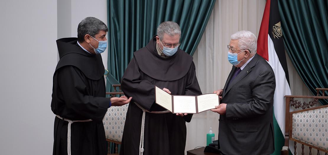 استقبل الرئيس الفلسطيني محمود عباس، مساء الخميس، في مقر الرئاسة بمدينة رام الله، حارس الأراضي المقدسة الأب فرانشيسكو باتون الفرنسيسكاني، ومستشار حراسة الأراضي المقدسة الأب إبراهيم فلتس، حيث سلماه دعوة لحضور قداس منتصف الليل لعيد الميلاد، وفق التقويم الغربي.