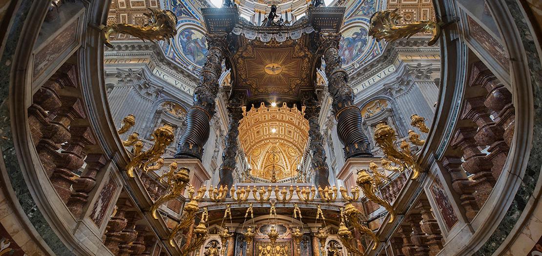 وكان برنيني قد صمّم الأعمدة الشهيرة والساحة الأمامية لبازيليك القديس بطرس، كما أنجز المظلّة البرونزية الضخمة فوق المذبح الرئيسي وكرسي القديس بطرس المذهّب في الحنية.