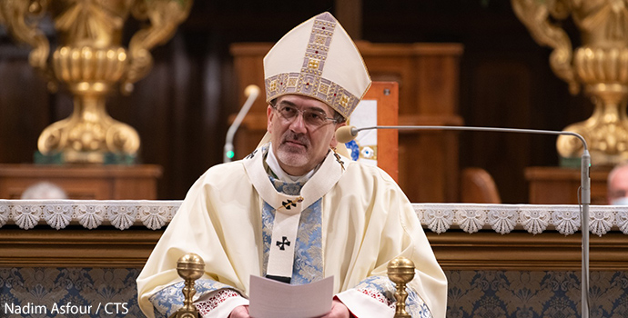 أضاف بطريرك القدس للاتين: "في مريم، يتغلب الايمان على الشك: فهي تعترف بمحدوديتها، وهي تعلم انها ليست سوى خليقة، لكنها تؤمن في الحال أن بالإمكان تعدّي الحدود، لا بقدرتها هي بل بقوة الله. لقد وثقت بهذه القوة، ووثقت بهذا الإله الصالح، معطي الحياة، والإله الخصب، الذي لا يطلب شيئًا".