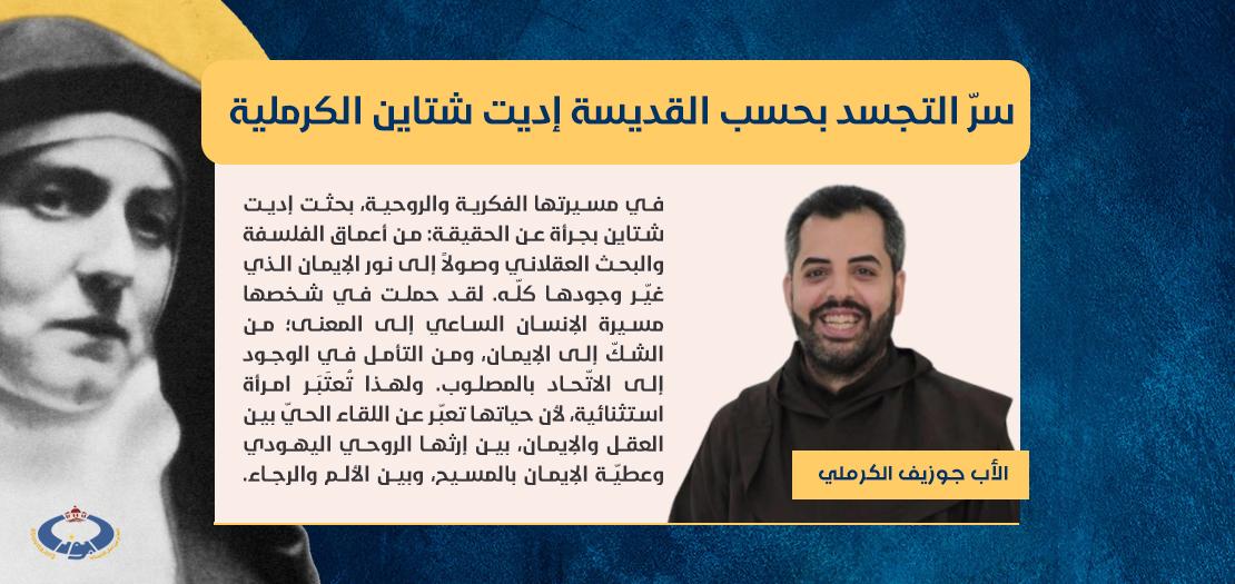 الميلاد عند إديت شتاين، ليس لحظةً عابرة من الاحتفالات الخارجية، بل هو بداية مغامرة النعمة التي تُعيد تشكيل حياة الإنسان من الداخل. وفي النصّ التالي، تأخذنا هذه الفيلسوفة والشهيدة من سحر العيد الخارجيّ إلى عمق السرّ: فالكلمة صار جسدا ليتّخذ من قلوبنا مسكنًا، نقدّمه راجين أن يساعد قرّاءنا على عيش هذا السرّ بوعيٍّ أعمق، وحضورٍ روحيّ أصدق.