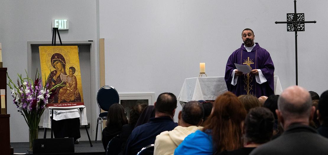 لأول مرة، ترأس الأب علاء مشربش، الكاهن في بطريركية القدس للاتين وراعي الجالية الكاثوليكية العربية الأمريكية في جنوب كاليفورنيا، قداسًا إلهيًا باللغة العربية، خلال مؤتمر التعليم المسيحي الكاثوليكي في لوس أنجلوس، الذي امتد لأربعة أيام.